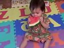 Description: Kai-Li eats watermelon off the rind |